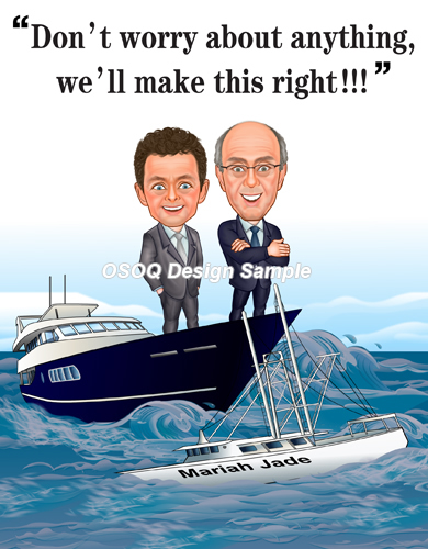 Ken in a yacht running down the vessel Mariah Jade, with a caption