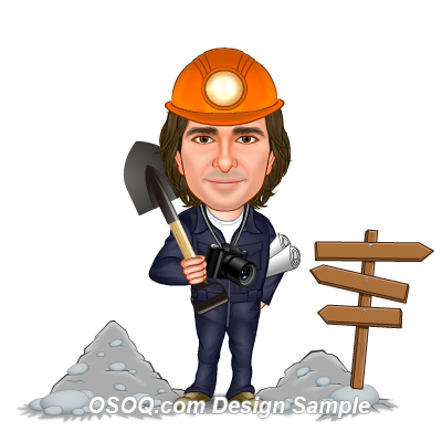 with me in a mining/miner clothing... i am looking for funny and simple.